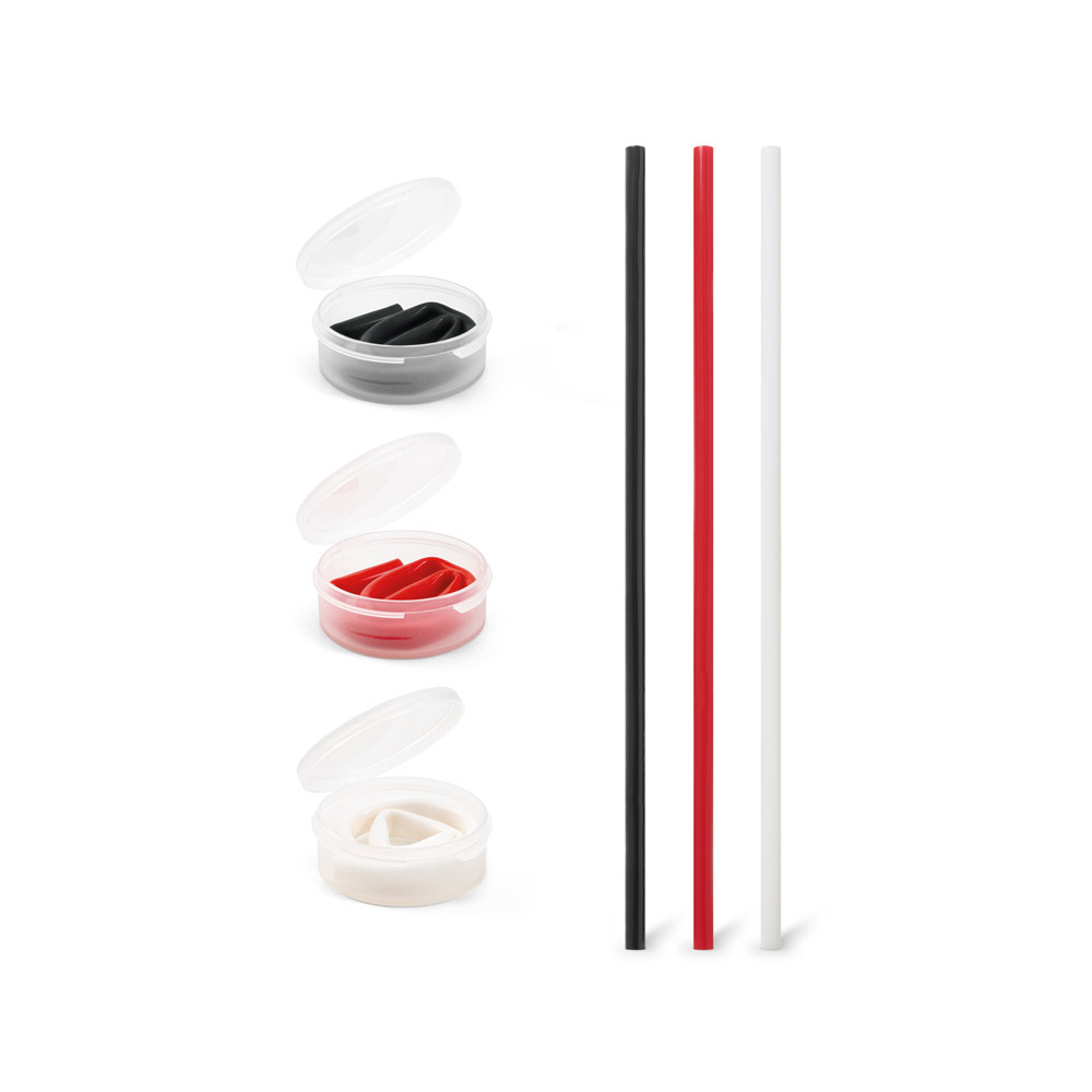 Багаторазова і гнучка соломинка з 100% силікону. Ця соломинка постачається з білою напівпрозорою коробочкою з матеріалу PP з матовим покриттям,для зручного транспортування. Солома: Ø7 x 250 мм | Футляр: Ø55 x 20 мм