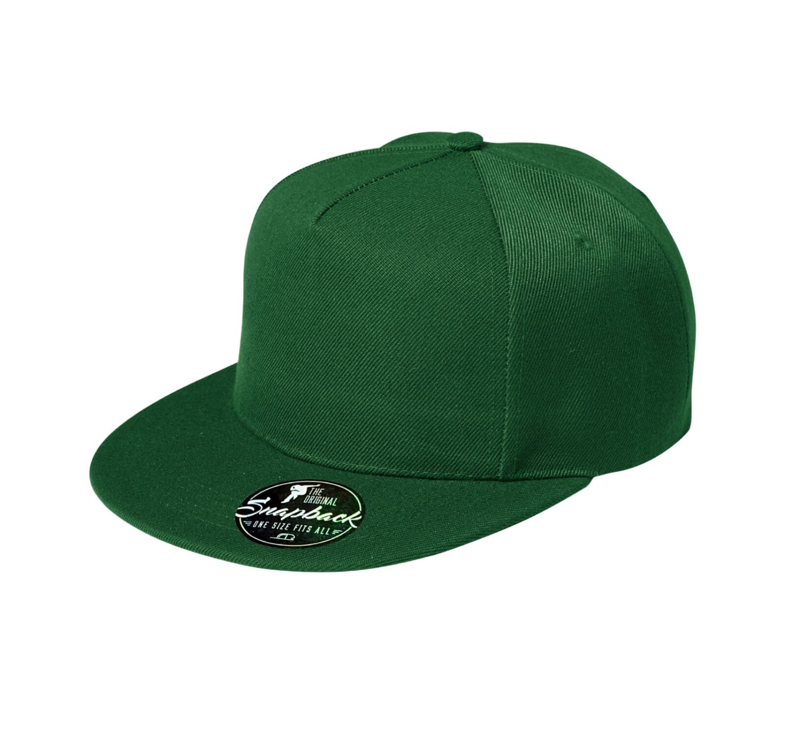 Кепка Rap 100% бавовна, 340 г/м2, з 5-ти клинами, укріплений передній клинок, прострочений плоский козирок, обшиті вентиляційні отвори, стрічка для захисту від поту, розмір регулюється пластмасовими кнопками.