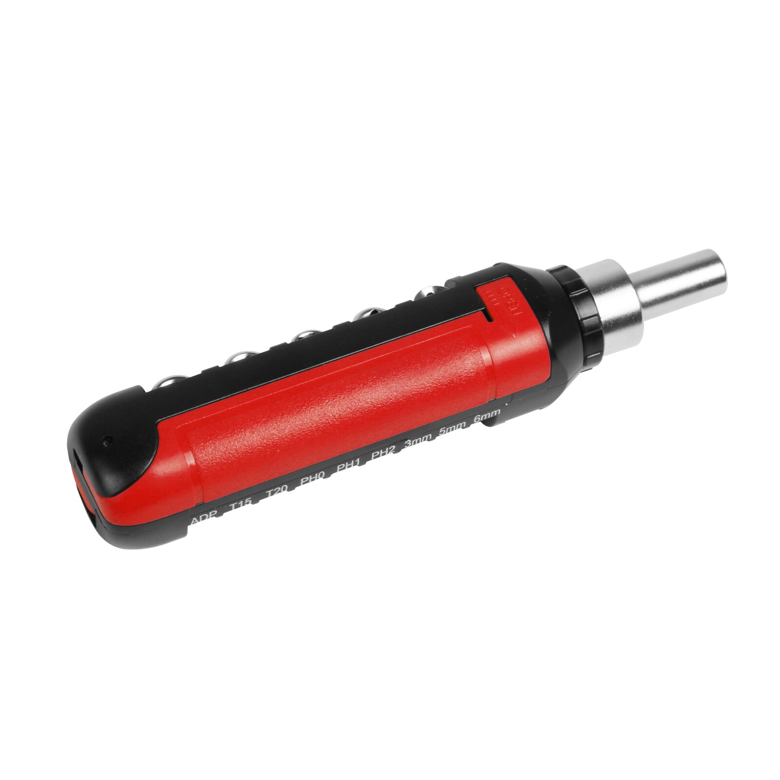 Викрутка виготовлена з АБС пластику та високоякісної сталі. В комплект викрутки входить магнітний тримач, 9 біт (один адаптор - ADP, два шестигранник - Т15, Т20, три плоскі - 3 мм., 5 мм.,6 мм., три хрестові - PH0, PH1, PH2) а також 5 головок торцевих ключів (6 мм., 7 мм., 8 мм., 9 мм, 10 мм.) Упакована в індивідуальну чорну подарункову коробку та поліетиленовий пакет. Розмір в складеному стані 16,5 см.