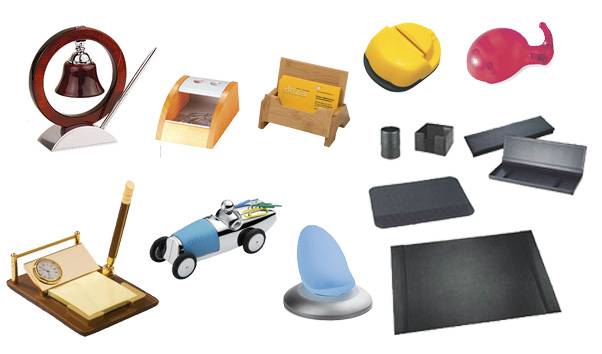 Держатели для бумаг, копи-холдеры, настольные приборы, подставки под визитницы и мобильные телефоны, скрепочницы, пресс-папье, рамки для фотографий, подставки под ручки – все что будет постоянно в сфере внимания ваших партнеров или клиентов, особенно в случае, когда большую часть рабочего времени они проводят за рабочим столом.